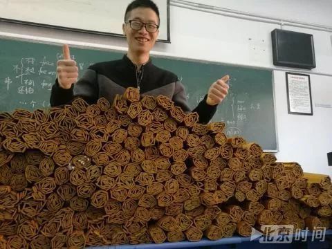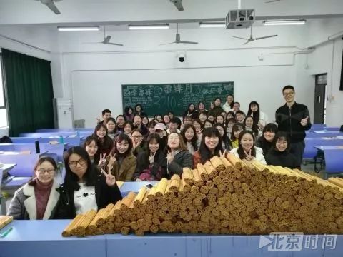 由于這作業(yè)實(shí)在太重,老師沒(méi)法帶回去,只有現(xiàn)場(chǎng)檢查后又發(fā)還給大家。同學(xué)們?cè)诮虒W(xué)平臺(tái)上傳竹簡(jiǎn)的照片,再由老師批改。