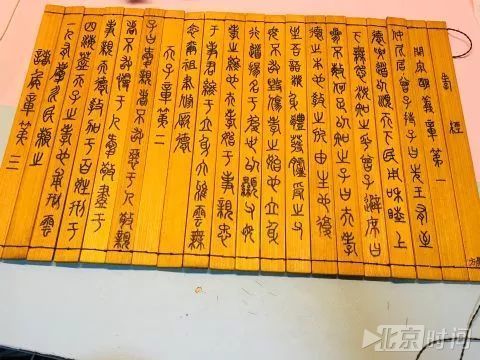 江西師范大學(xué)文學(xué)院李福言老師給16級(jí)漢語(yǔ)言文學(xué)專業(yè)5班的同學(xué)布置了一項(xiàng)特別的作業(yè):用小篆在竹簡(jiǎn)上手抄《孝經(jīng)》全文。