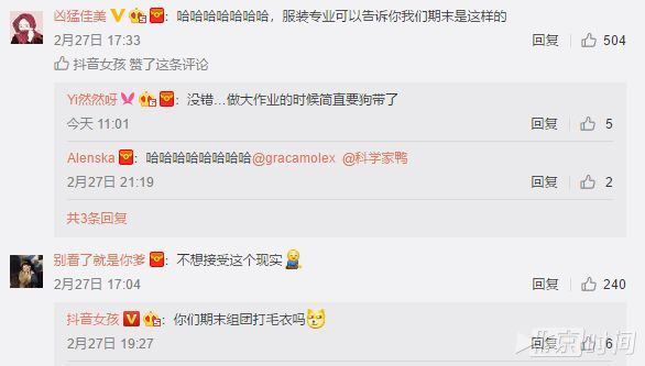 也有網(wǎng)友發(fā)出疑問(wèn),你們服裝專業(yè)的,都是期末組團(tuán)織毛衣么?