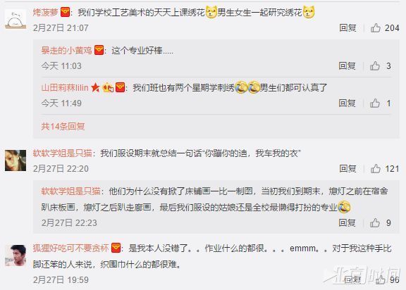 對(duì)于這些熱愛(ài)針線活的男生們,網(wǎng)友們紛紛表示贊揚(yáng)。