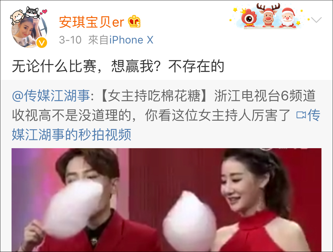 節(jié)目之外,女主持也霸氣回應(yīng),“無論什么比賽,想贏我?不存在的。”